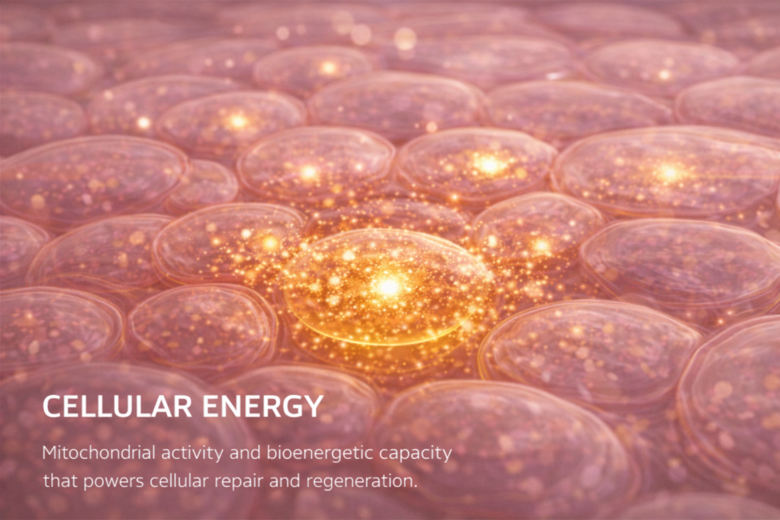 In most cells, mitochondria generate ATP, the molecule that stores and transfers energy required for essential cellular functions. In skin, ATP powers repair, renewal, and collagen synthesis.